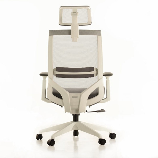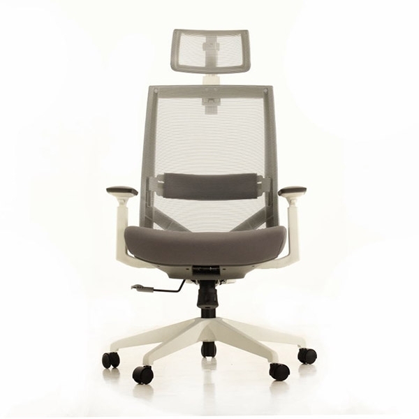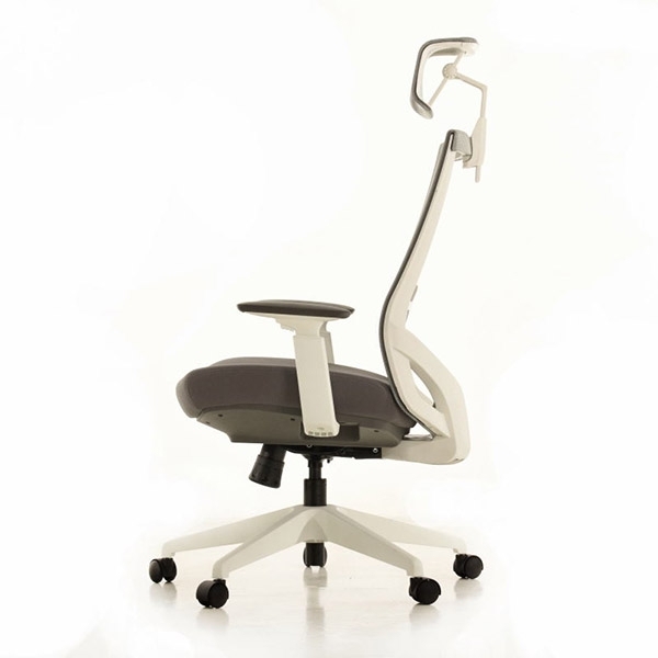Rangka kursi berwarna hitam dan putih; sandaran dan headrest dari bahan jaring (breathable mesh) berwarna hitam dan abu-abu untuk menunjang postur dan kenyamanan pemakai. Dudukan terbuat dari bahan busa berkwalitas tinggi yang dibungkus kain warna hitam dan abu-abu.