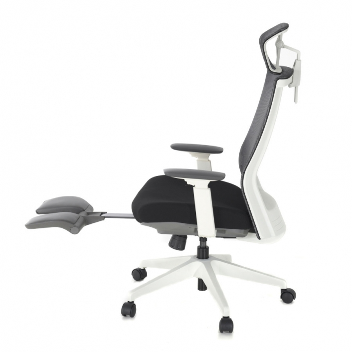 Rangka kursi berwarna putih; sandaran dan headrest dari bahan jaring (breathable mesh) berwarna hitam untuk menunjang postur dan kenyamanan pemakai. Dudukan terbuat dari bahan busa berkwalitas tinggi yang dibungkus kain warna hitam.