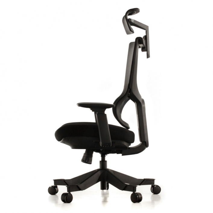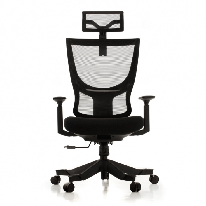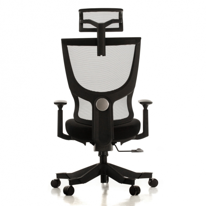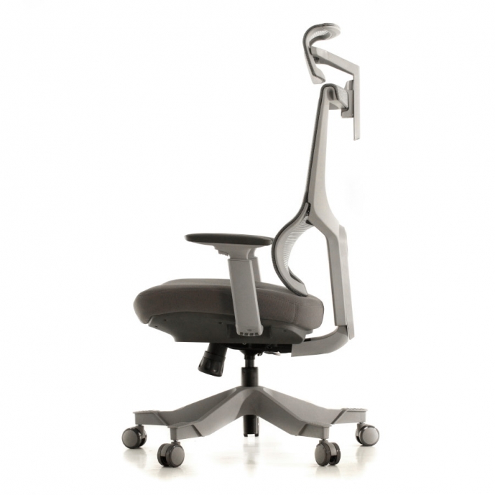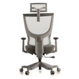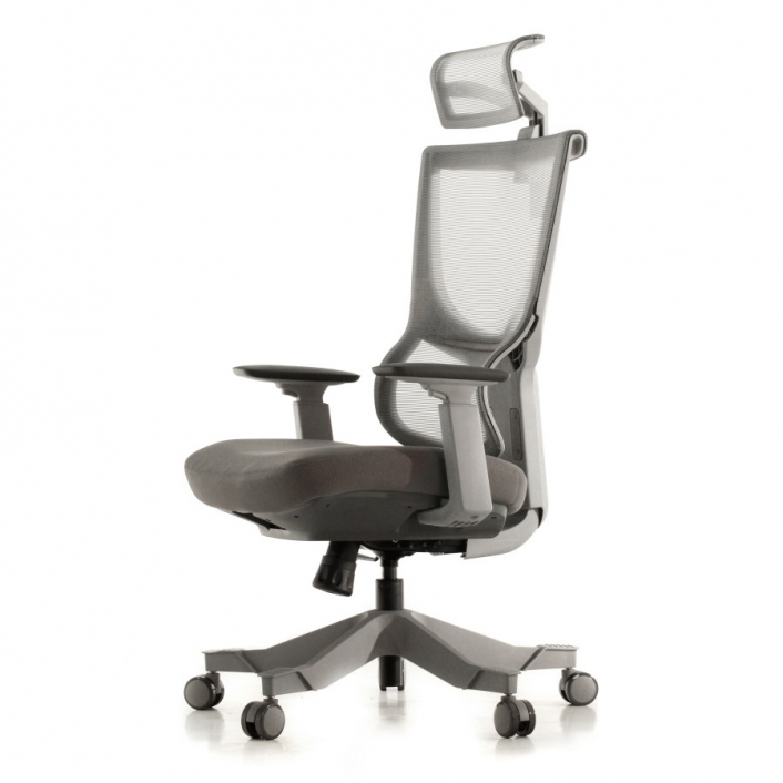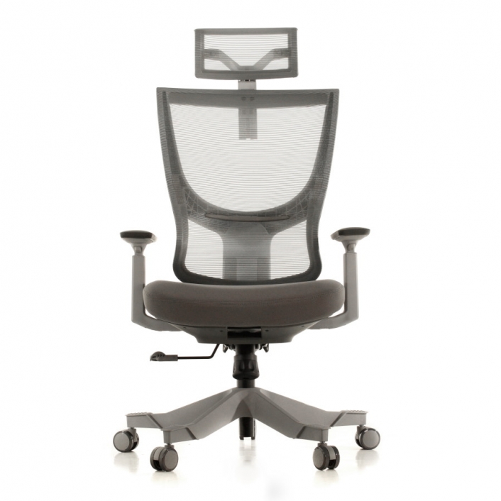 Rangka kursi berwarna hitam dan abu-abu; sandaran dan headrest dari bahan jaring (breathable mesh) berwarna hitam untuk menunjang postur dan kenyamanan pemakai. Dudukan terbuat dari bahan busa berkwalitas tinggi yang dibungkus kain warna hitam dan abu-abu.