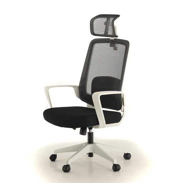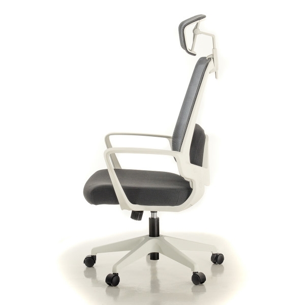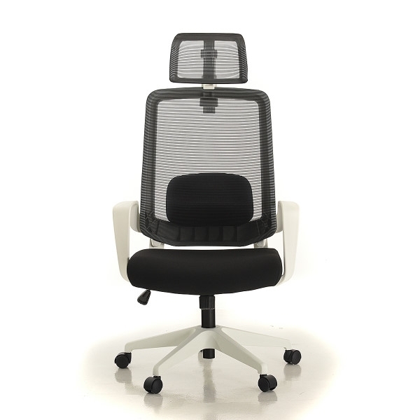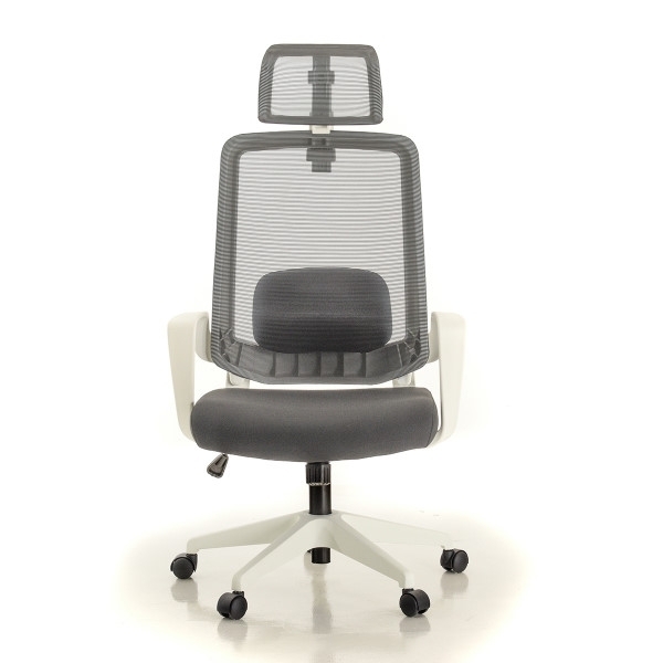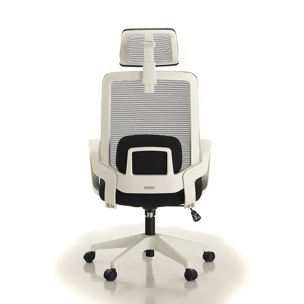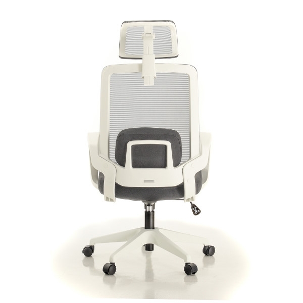 Rangka kursi berwarna hitam dan putih; sandaran dan headrest dari bahan jaring (breathable mesh) berwarna hitam dan abu-abu untuk menunjang postur dan kenyamanan pemakai. Dudukan terbuat dari bahan busa berkwalitas tinggi yang dibungkus kain warna hitam dan abu-abu.