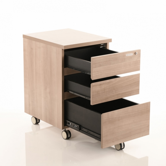 Box laci dorong compact, GCS 4353 MDFG GrandFurniture®, dilengkapi roda castor bahan nylon yang berkualitas untuk mempermudah mobilitas.