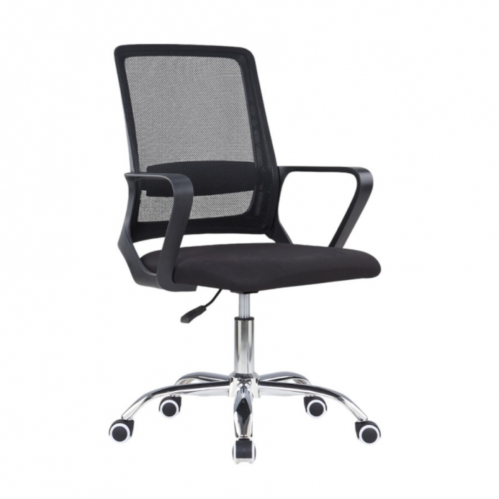 Kursi kantor beroda GFC Grand Furniture® yang ergonomis dengan ketinggian yang dapat disesuaikan sesuai kebutuhan. Desain modern minimalis dengan sandaran jaring (mesh back) yang nyaman dan kuat. Dudukan terbuat dari bahan busa berkwalitas dibungkus kain fabric warna hitam.