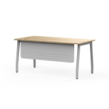 Meja kerja GFU Grand Furniture® yang sangat elegan dan fungsional. Daun meja dari bahan MFC (particle board lapis melamin), kaki meja bentuk "A" dari bahan besi diberi warna powder coating dan menggunakan front panel.